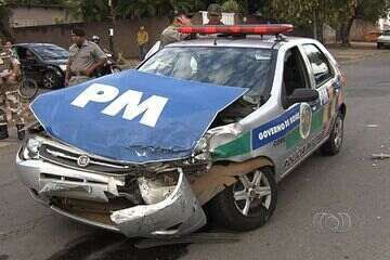 Uma caminhonete bateu em um carro da Polícia Militar (PM) que seguia para atender uma ocorrência na manhã desta sexta-feira (26), no Setor Sudoeste, em Goiânia. O acidente aconteceu no cruzamento das ruas C-56 e C-11. A caminhonete tombou.